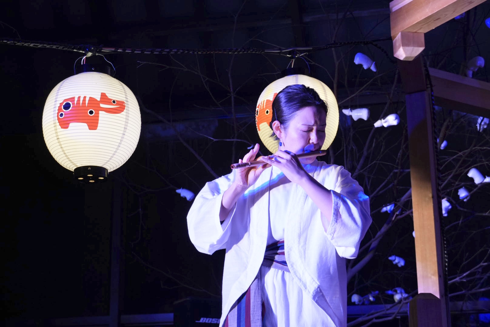 夜のお楽しみは、毎晩開催される「あいばせ!踊らんしょ」。観るだけでなく一緒に参加できる、体験型のイベントです。