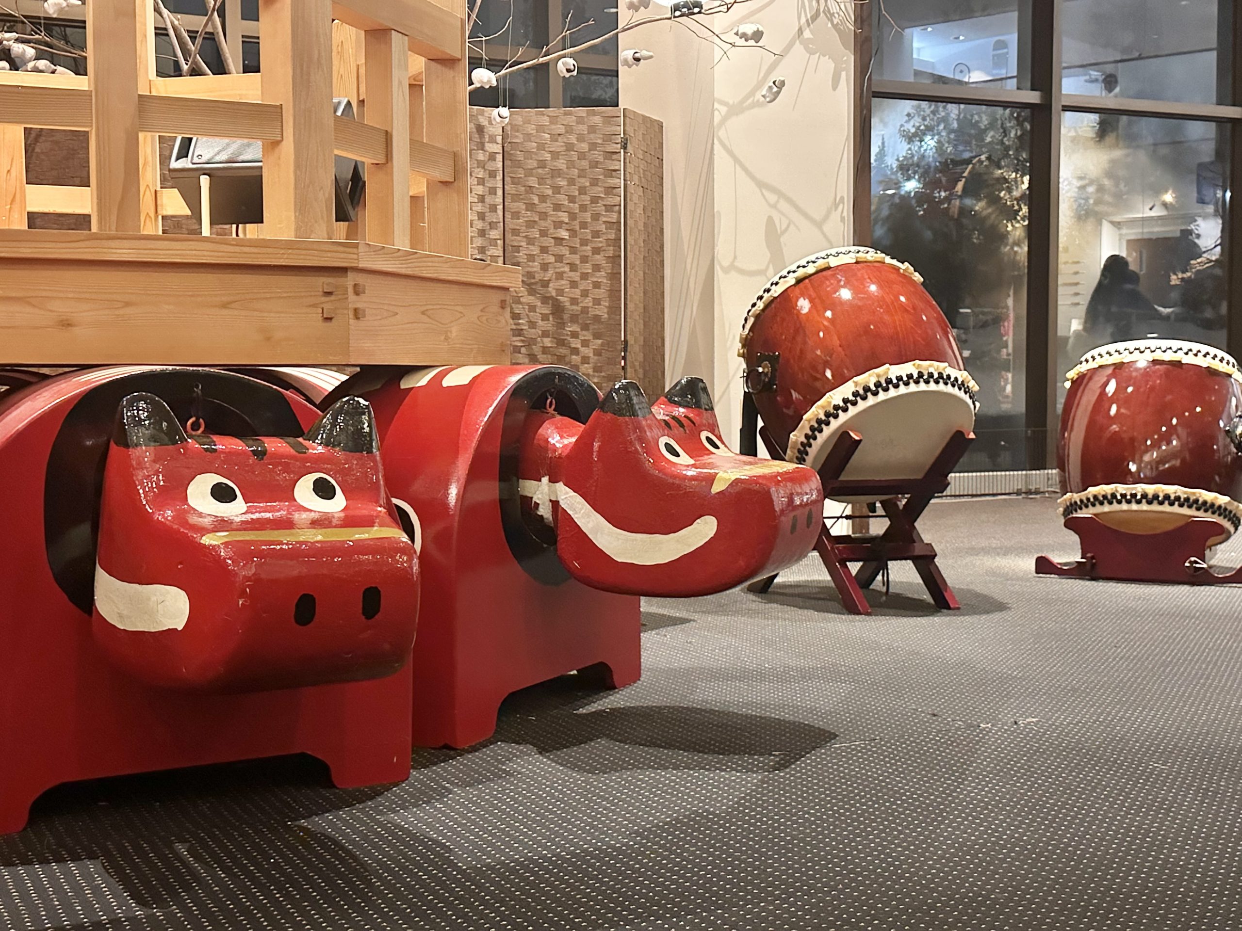 館内は会津の郷土玩具「赤べこ」で彩られ、歩くだけでも旅気分が高まります。