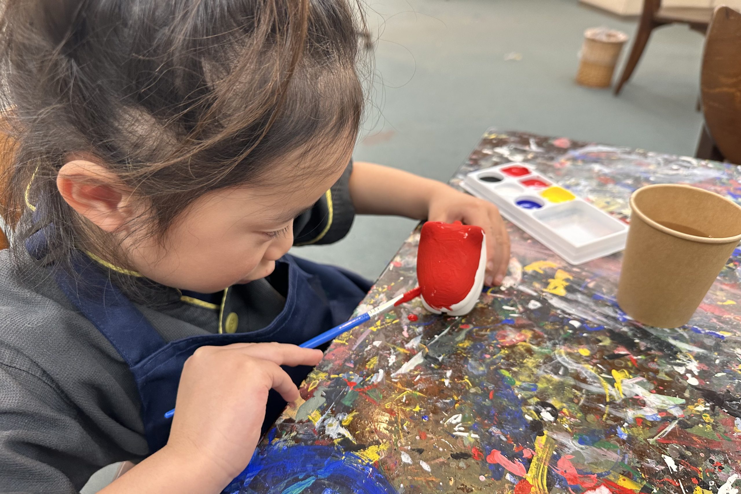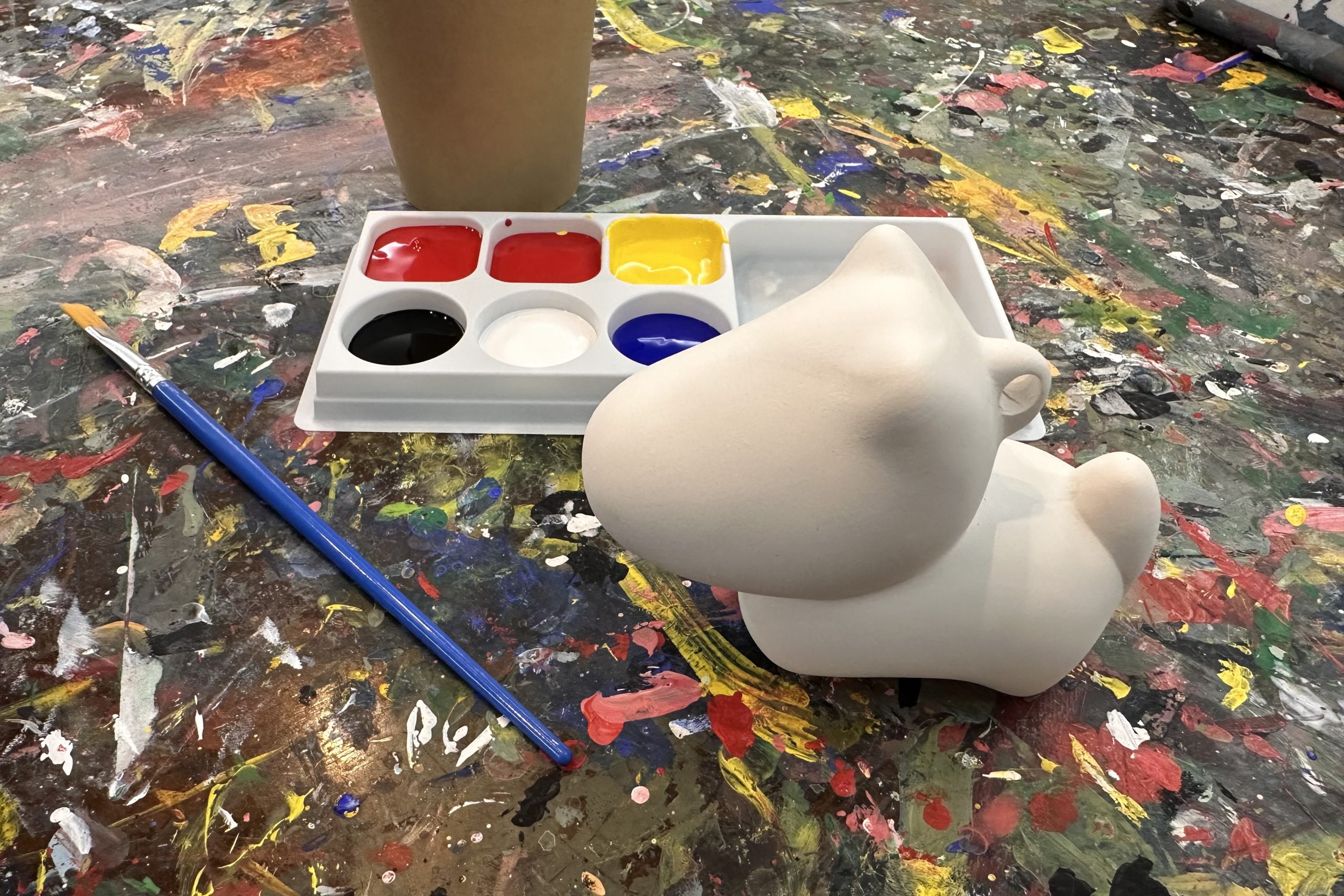 好きなものを選んだら絵付け体験スタート。6歳の娘も真剣な表情で一生懸命塗っていました。