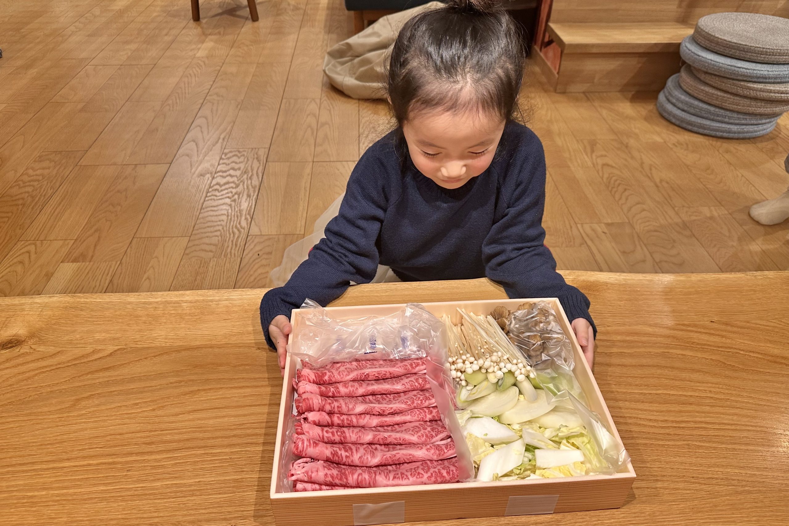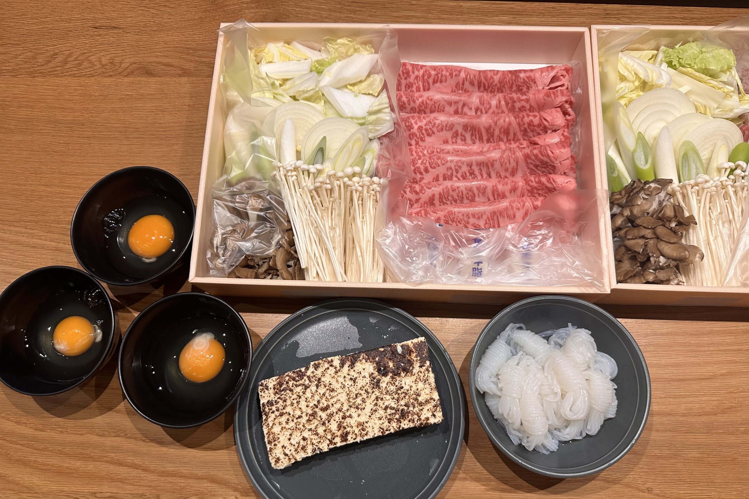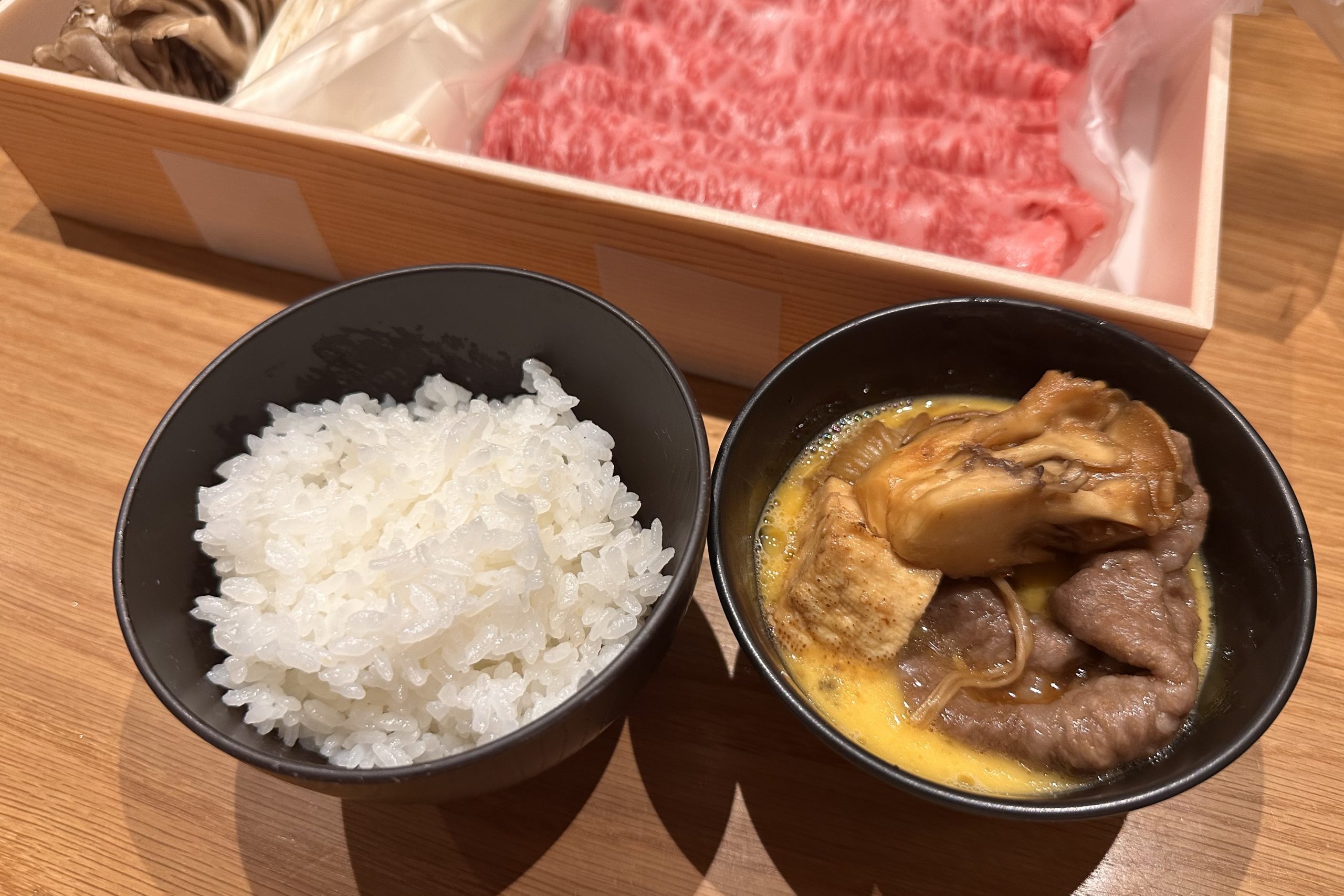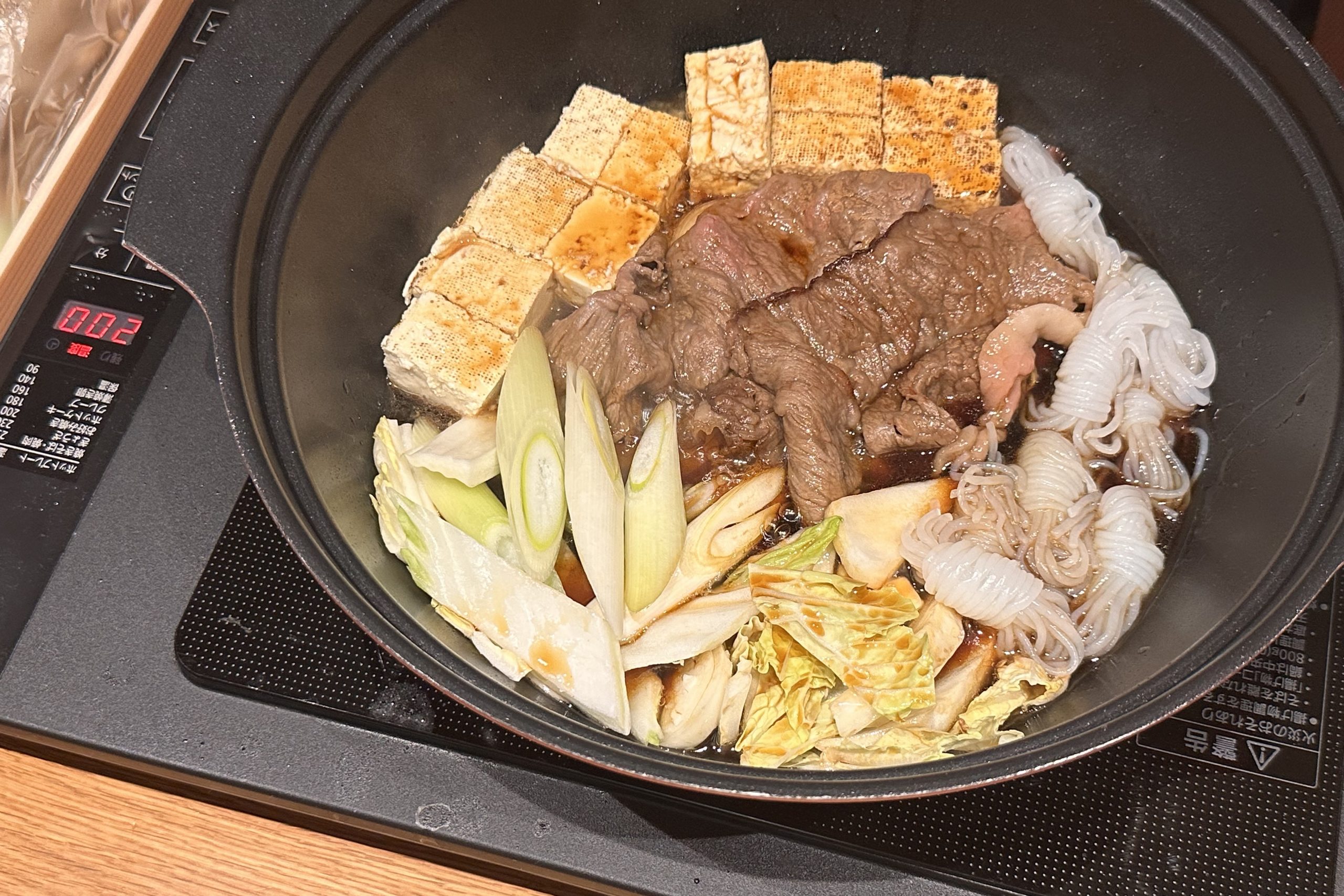 夕食は3種類から選択でき、今回はすき焼きを選びました。