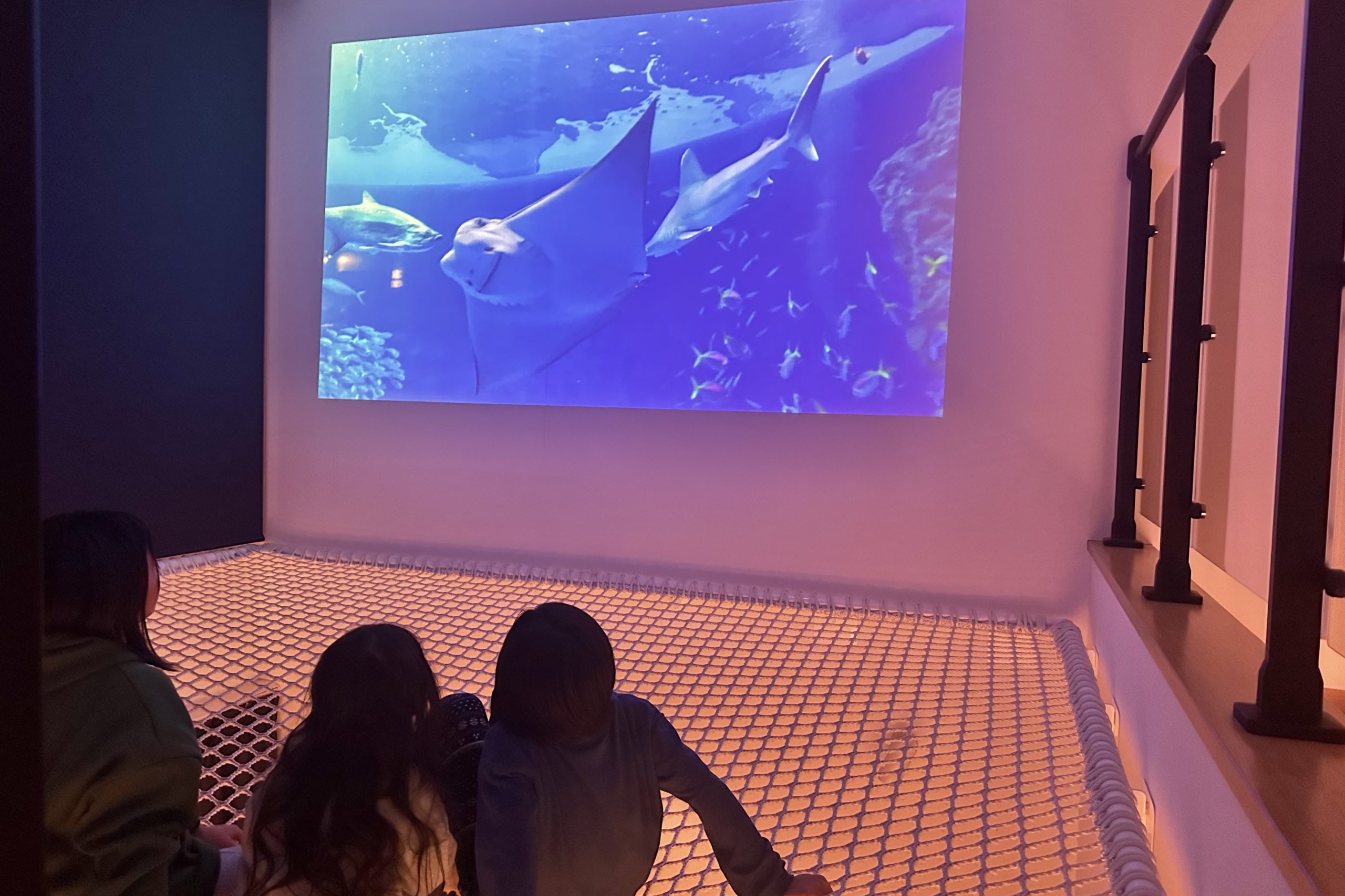 空中ネット横の壁にはプロジェクターもあり、夜はネットの上で映画鑑賞を楽しむという最高の過ごし方に。