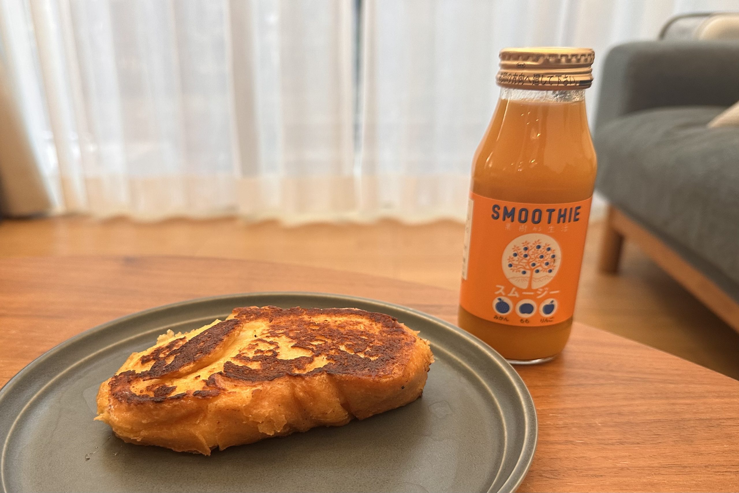朝食はフレンチトーストとスムージーのセット。