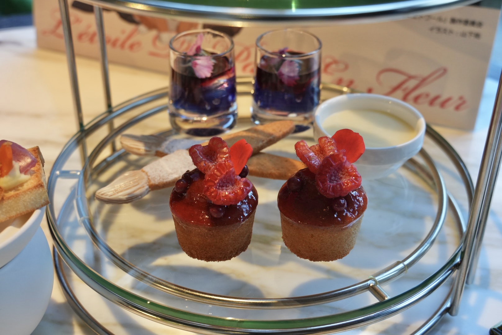 アフタヌーンティースタンドの上段には、映画の主人公、フジコと千鶴の2人のエトワールをイメージしたスイーツが並びます。